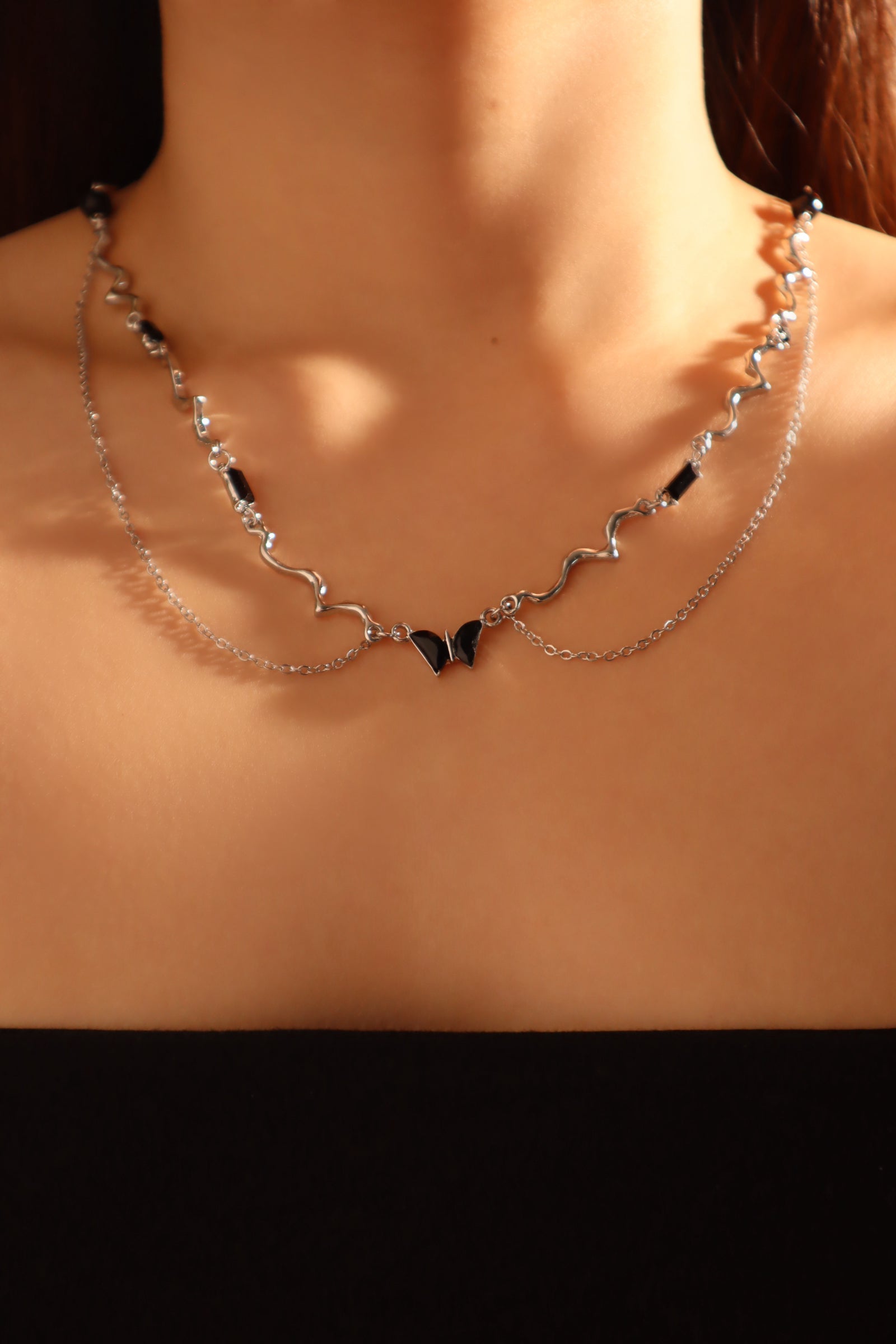 Collar con mariposa y gema negra