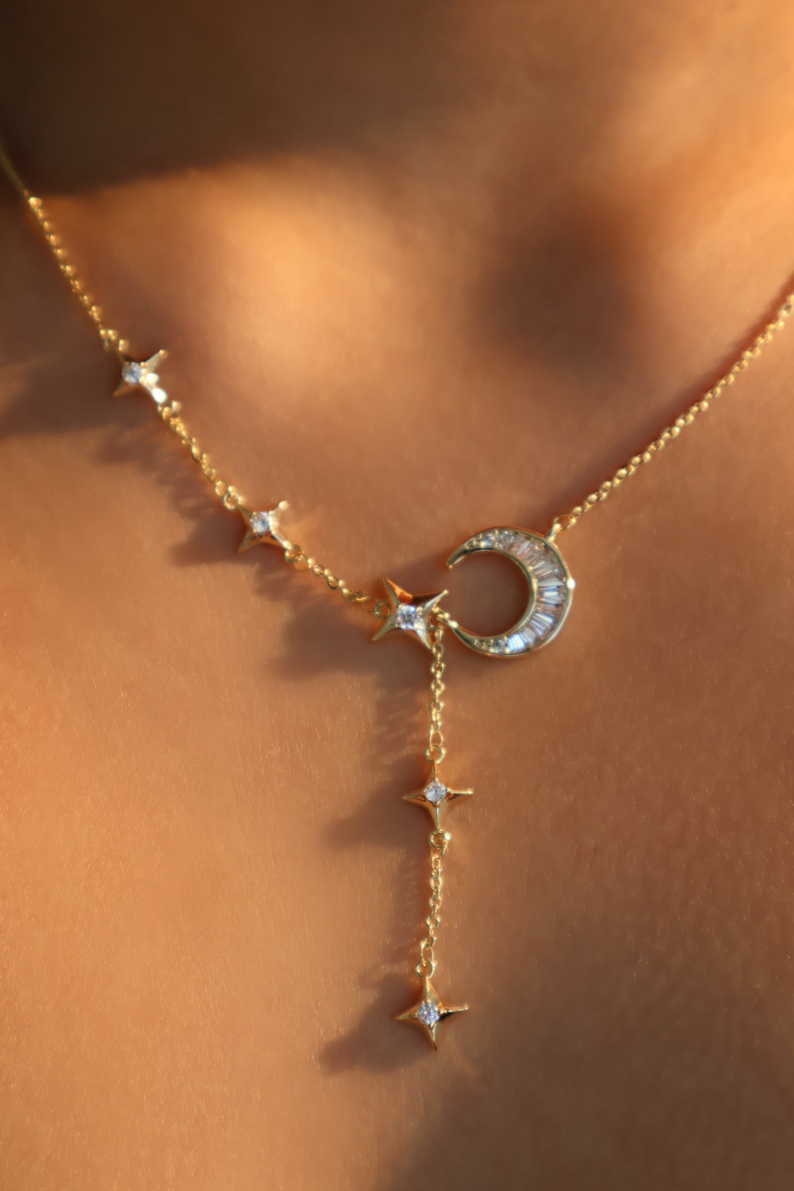 Pendientes de Luna y Estrella hechos de Oro y Opalo