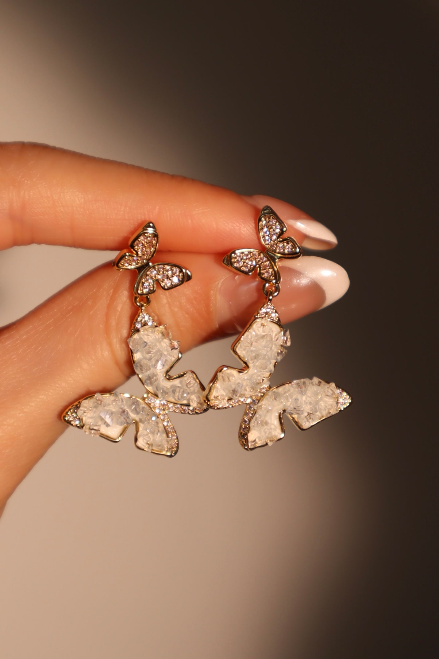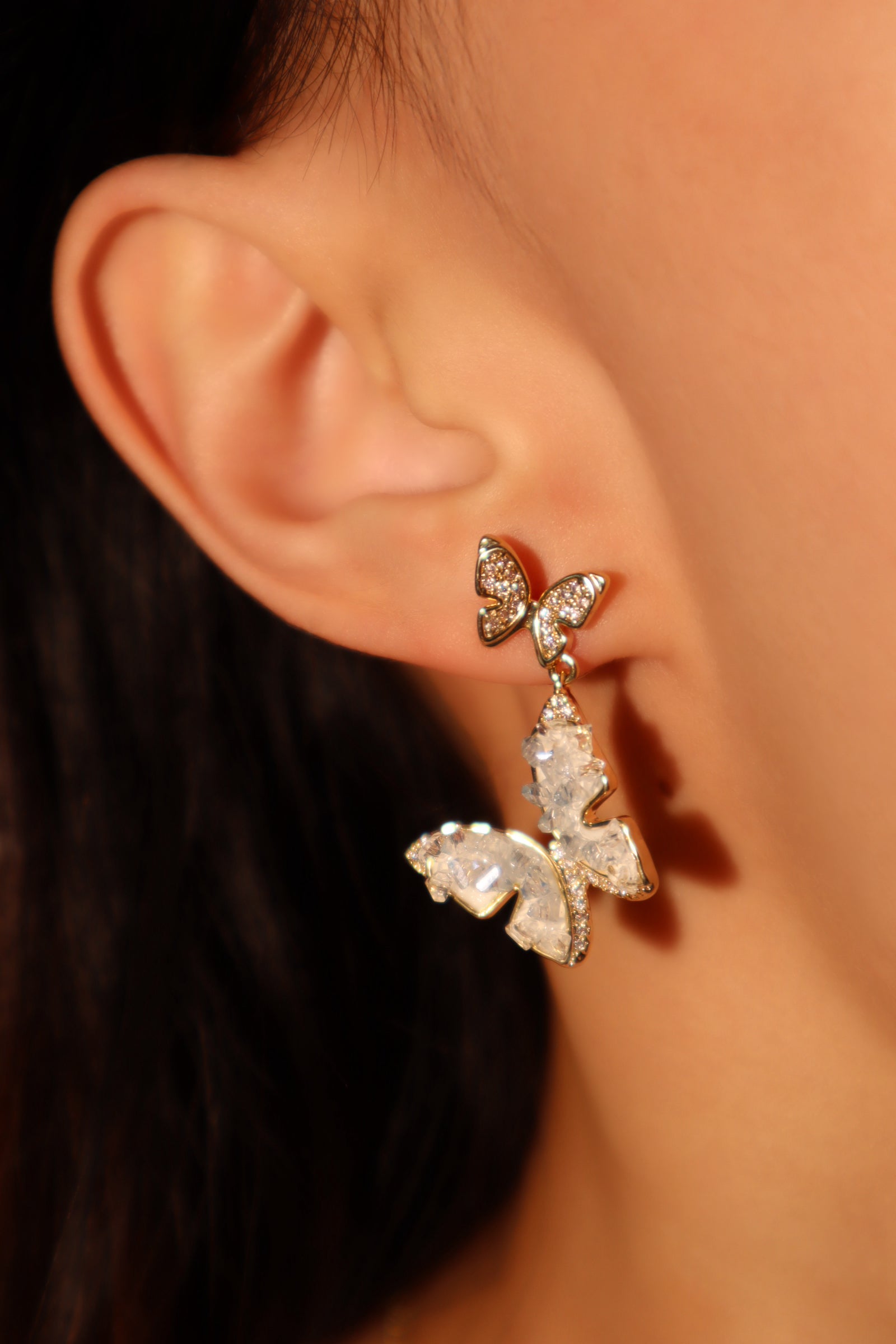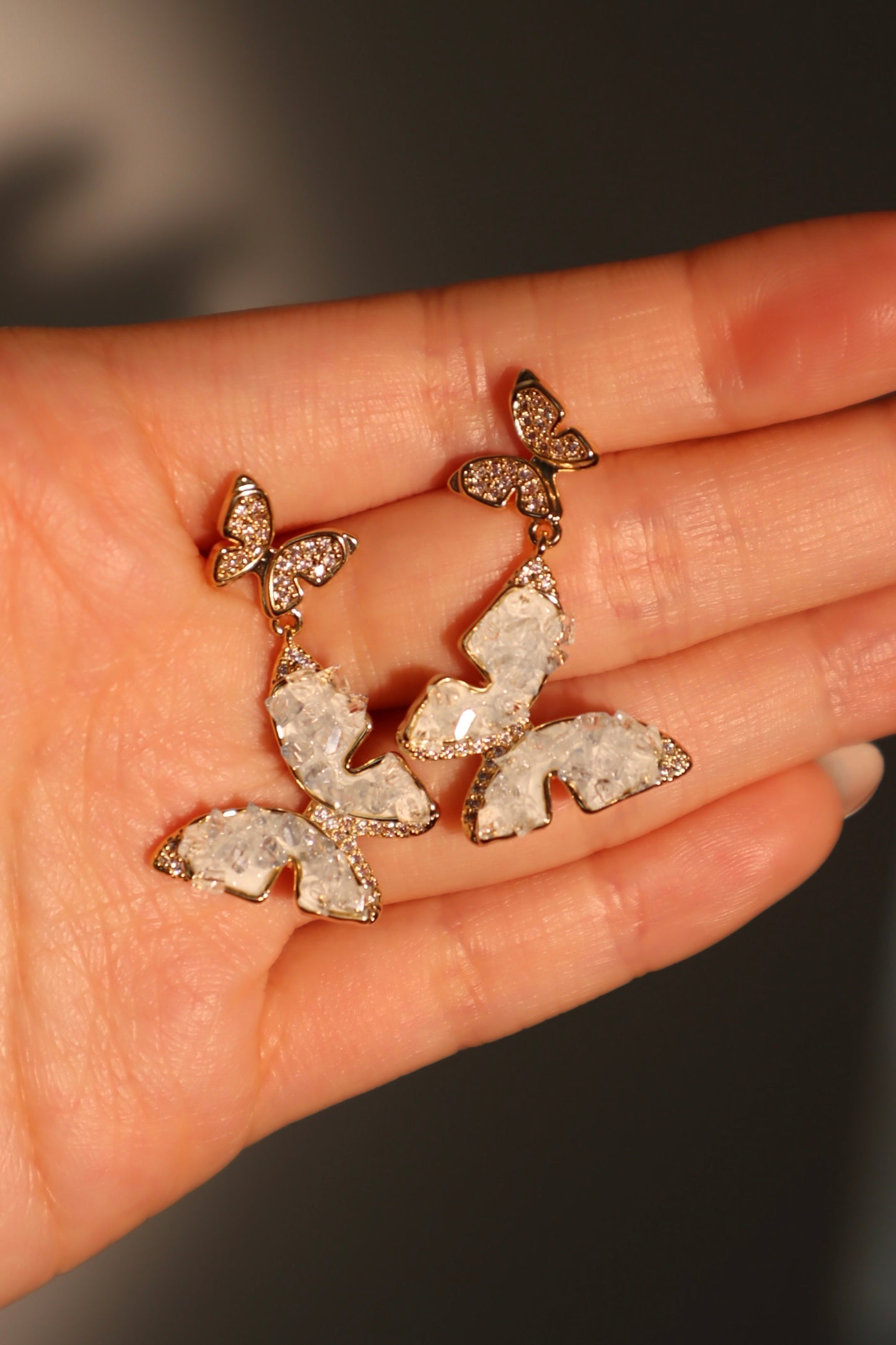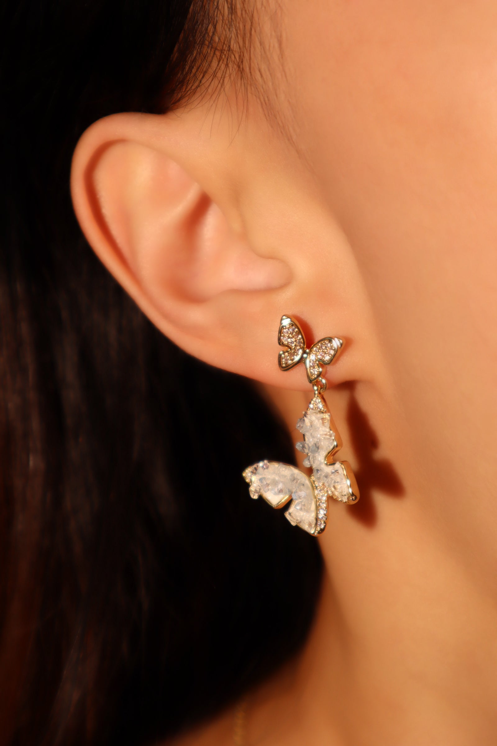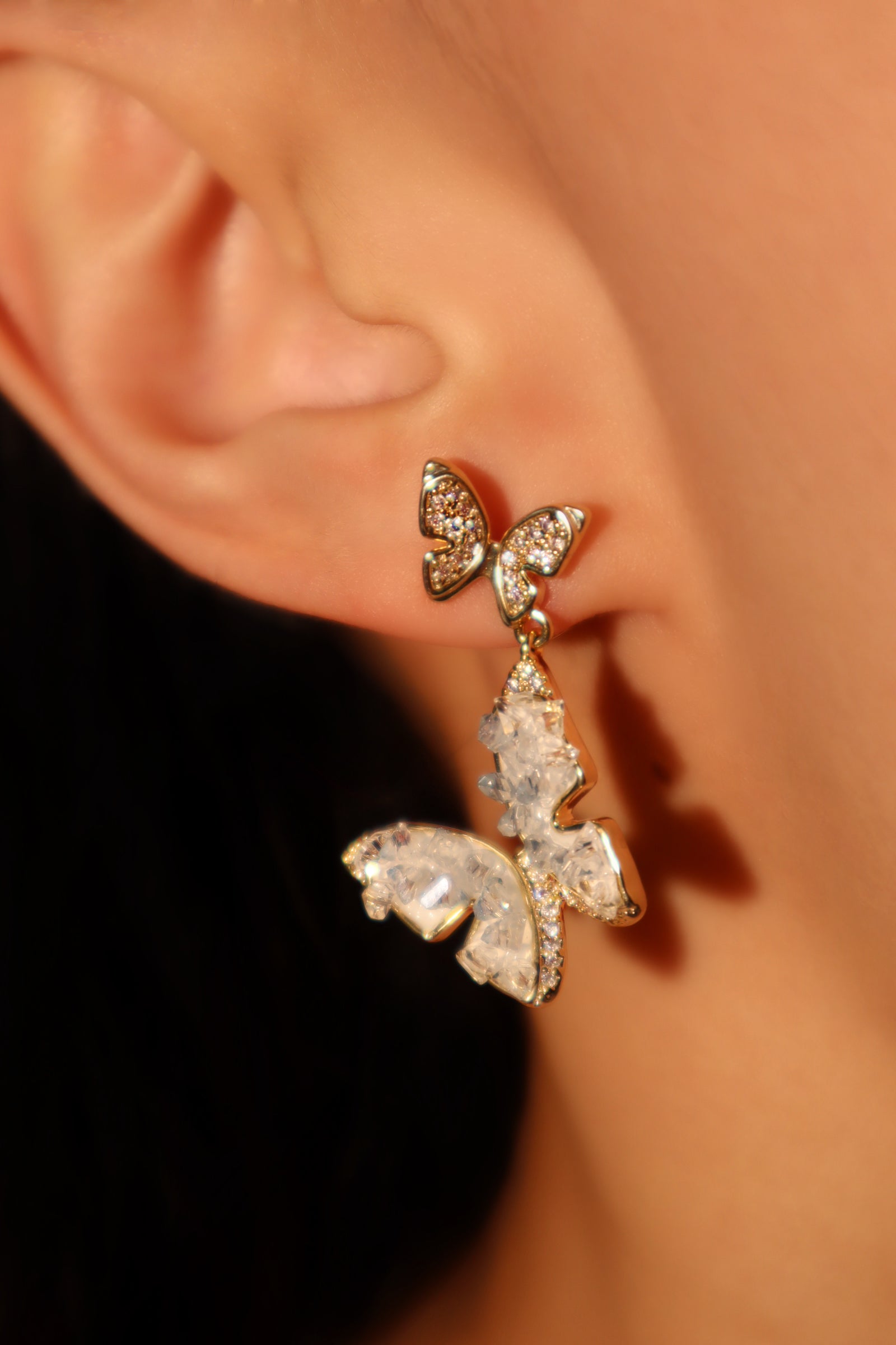 Aretes en forma de mariposa de cristal azul